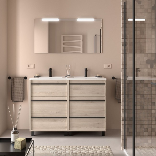 Ensemble meuble vasque salle de bain ATTILA 1200 6 tiroirs Chêne Naturel P450 - SALGAR 105133