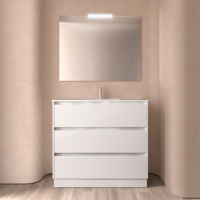 Ensemble NOJA II 1000 3 tiroirs Blanc Brillant (Meuble de salle de bain+plan vasque) dimensions mm: largeur 1000 x profondeur 450 À poser Réf. 106223 SALGAR