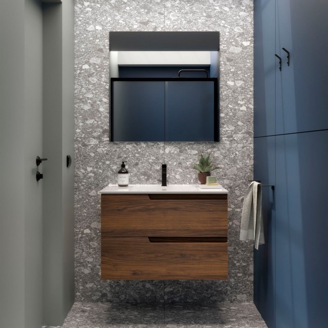 Ensemble meuble et vasque VIMA 800 2 tiroirs Noyer Maya P450 - SALGAR 113501