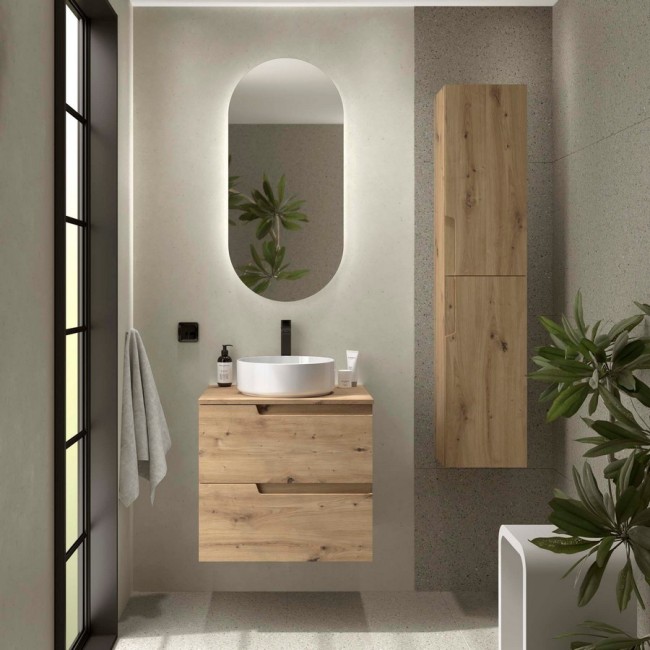 Ensemble VIMA 600 2 tiroirs Chêne Montana (Meuble de salle de bain+plan de toilette) dimensions mm: largeur 600 x profondeur 450 Suspendu Réf. 117952 SALGAR