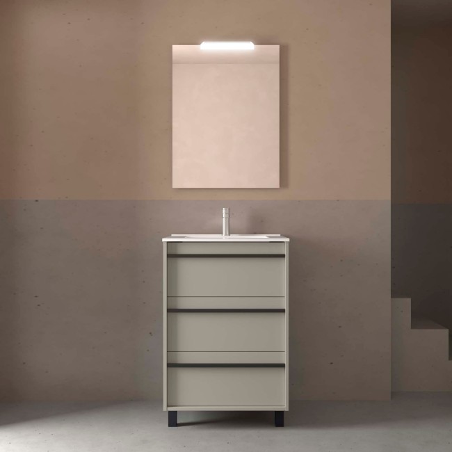 Ensemble meuble vasque salle de bain ATTILA 600 3 tiroirs Gris satiné P450 - SALGAR 118001