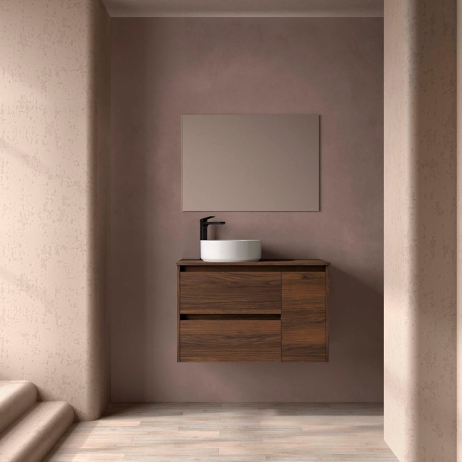 Ensemble NOJA II 900 2T1P droite - vasque à gauche Noyer Maya (Meuble de salle de bain+plan de toilette) dimensions mm: largeur 900 x profondeur 450 Suspendu Réf. 118259 SALGAR