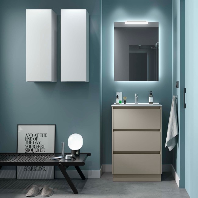 Ensemble meuble et vasque NOJA II 600 3 tiroirs Gris satiné P450 - SALGAR 118472
