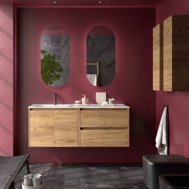 Ensemble meuble et vasque NOJA II 1200 2 tiroirs 2 portes Chêne Africain P450 - SALGAR 118825