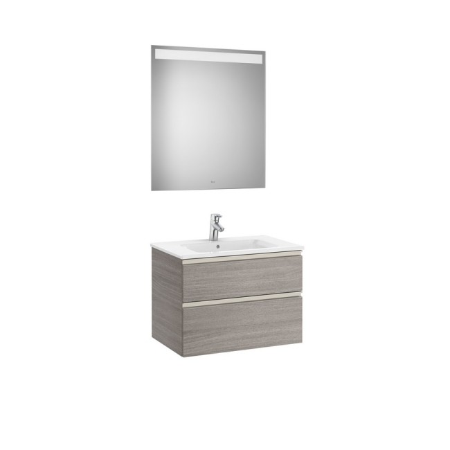The gap pack meuble 2 tiroirs + lavabo slim + miroir led eidos 700mm city oak - ROCA A851510402