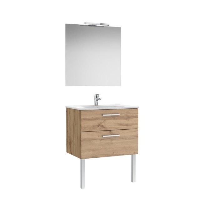Victoria pack meuble 2 tiroirs + lavabo + miroir victoria + applique starlight new 700mm noyer