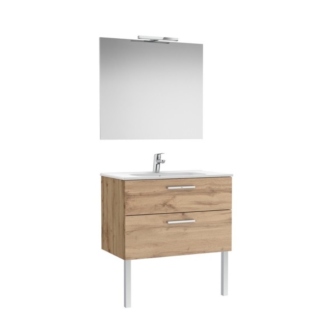 Victoria pack meuble 2 tiroirs + lavabo + miroir victoria + applique starlight new 800mm noyer
