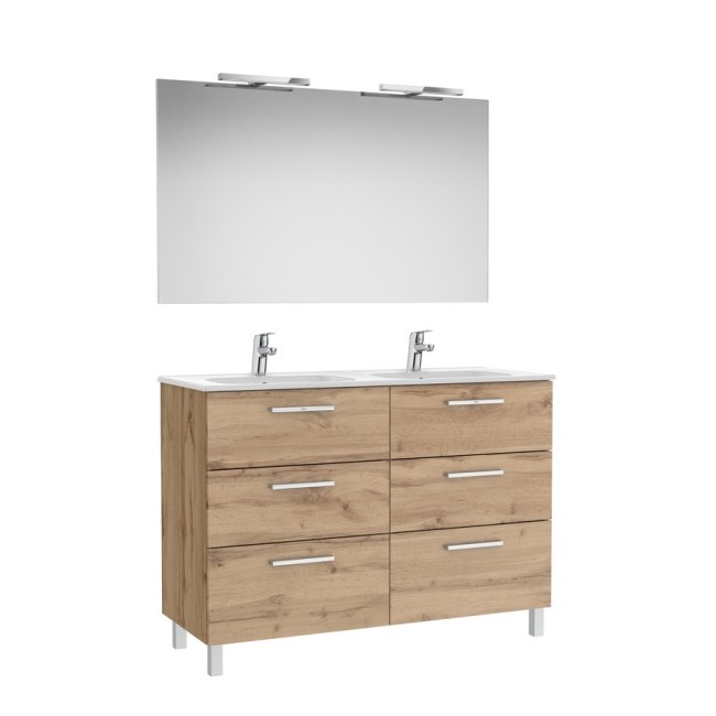Victoria pack meuble 6 tiroirs + lavabo double + miroir victoria + applique starlight new 1200mm noyer