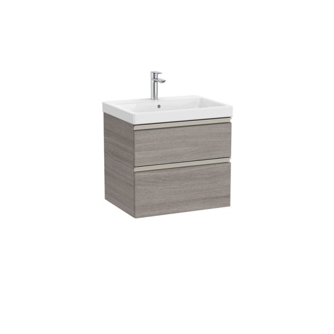 The gap unik 2 tiroirs lavabo mural 600 mm city oak/poignées nickel mat - ROCA A851963402