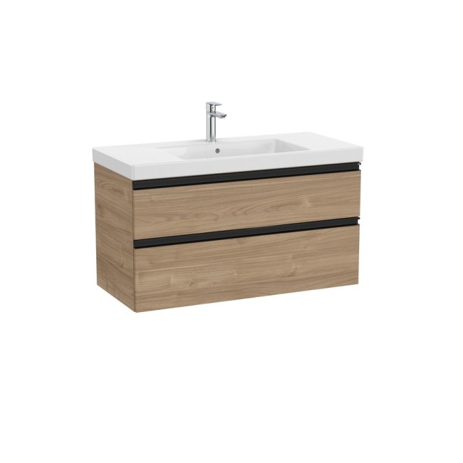 The gap unik 2 tiroirs lavabo mural centré 1000 mm noyer/poignées noires - ROCA A851965517