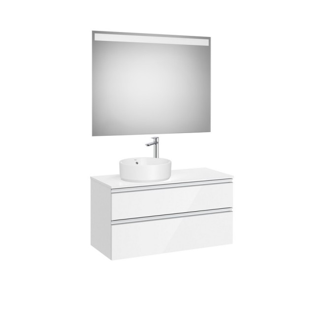 The gap pack 2 tiroirs pour vasque à gauche 1000mm (meuble+plan+miroir) blanc brillant/poignées alu brillantes