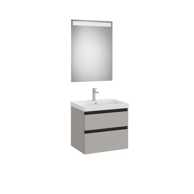 The gap pack 2t lavabo mural (unik+miroir) 600mm gris moyen mat/poignées noires - ROCA A851974547