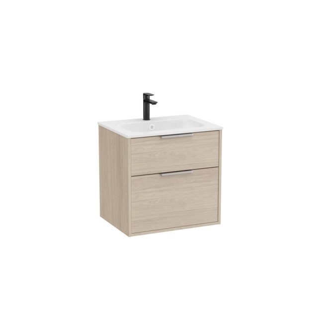 Optica unik 2 tiroirs et lavabo en Stonex 600 mm frêne clair
