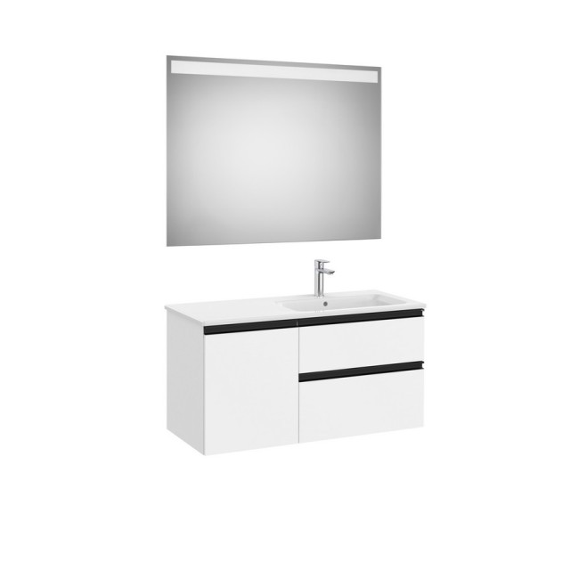 The gap pack 2 tiroirs + 1 porte 1000 mm asymétrique droite (unik+miroir) blanc mat/poignées noires