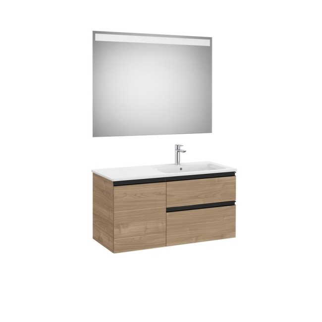 The gap pack 2 tiroirs + 1 porte 1000 mm asymétrique droite (unik+miroir) noyer/poignées noires