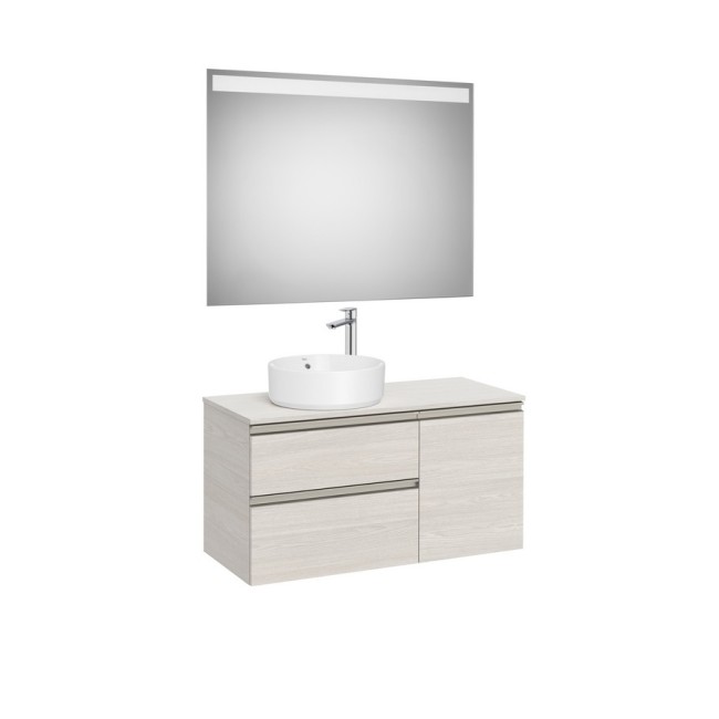 The gap pack 2 tiroirs + 1 porte pour vasque à gauche 1000mm (meuble+plan+miroir) frêne nordic/poignées nickel mat