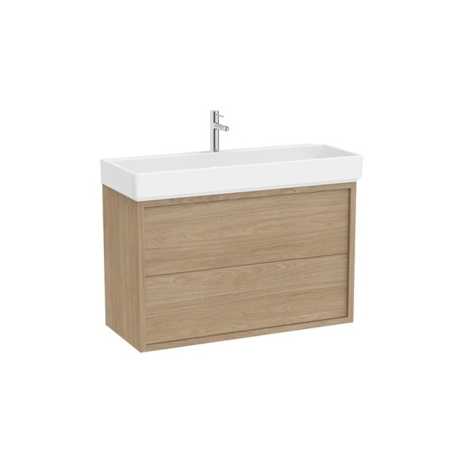 Tura unik (solution meuble 2 tiroirs + lavabo percé 1 trou) 1000 mm orme clair