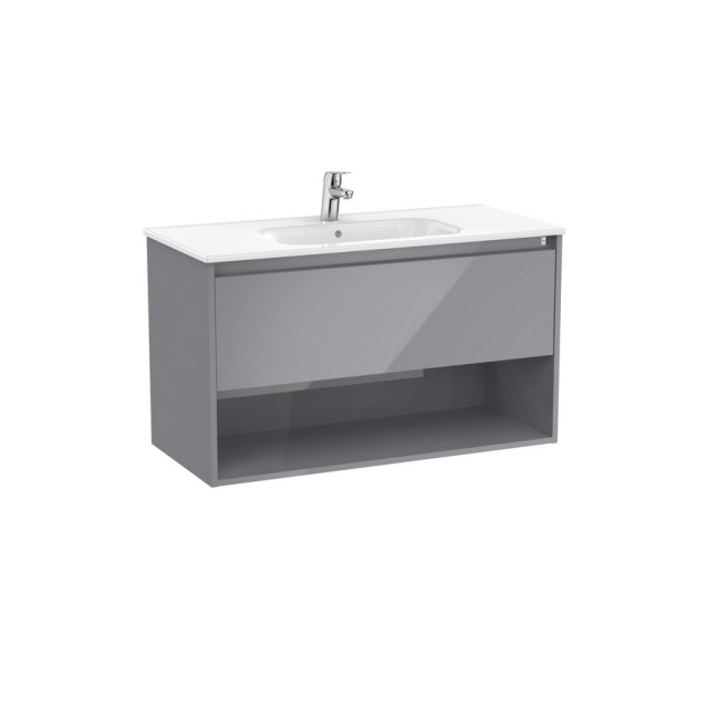 Tenor unik (meuble 1 tiroir et 1 niche inférieure + lavabo) 1000 mm gris galet brillant
