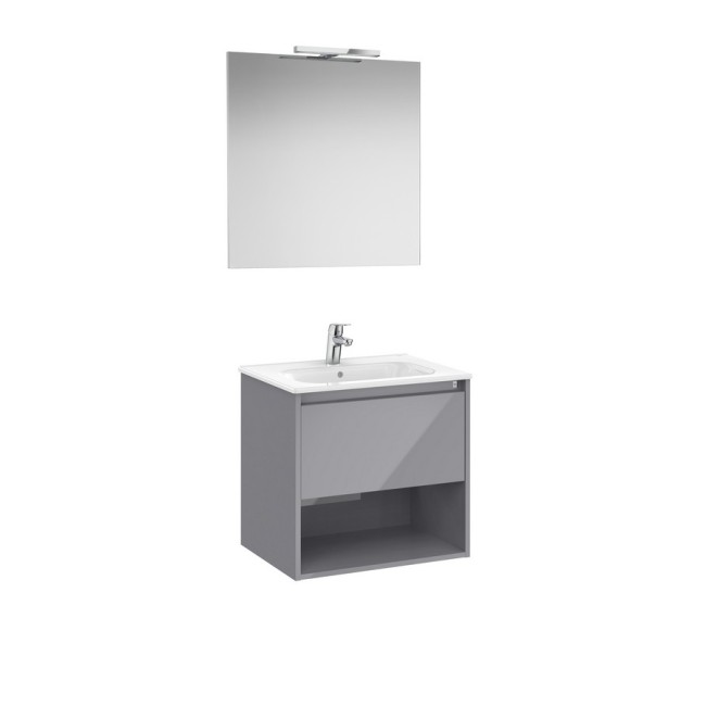 Tenor pack (meuble 1 tiroir et 1 niche inférieure + 1 lavabo + 1 applique starlight) 600 mm gris galet brillant