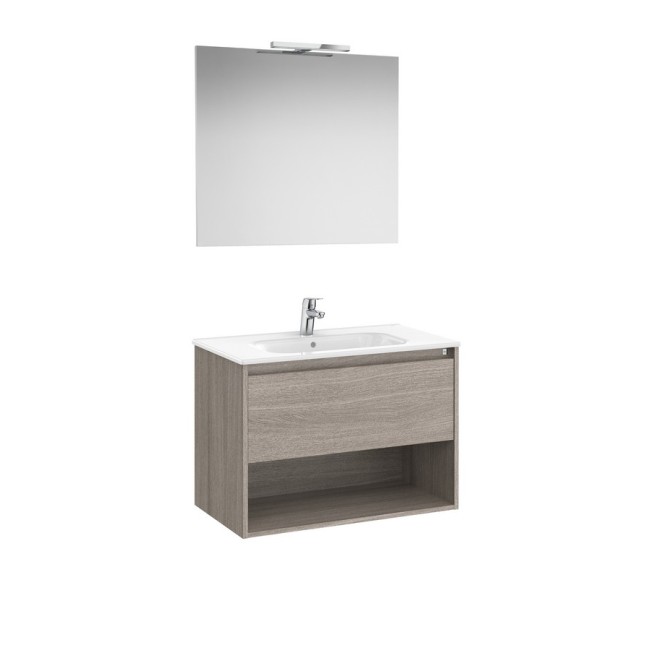 Tenor pack (meuble 1 tiroir et 1 niche inférieure + 1 lavabo + 1 applique starlight) 800 mm city oak