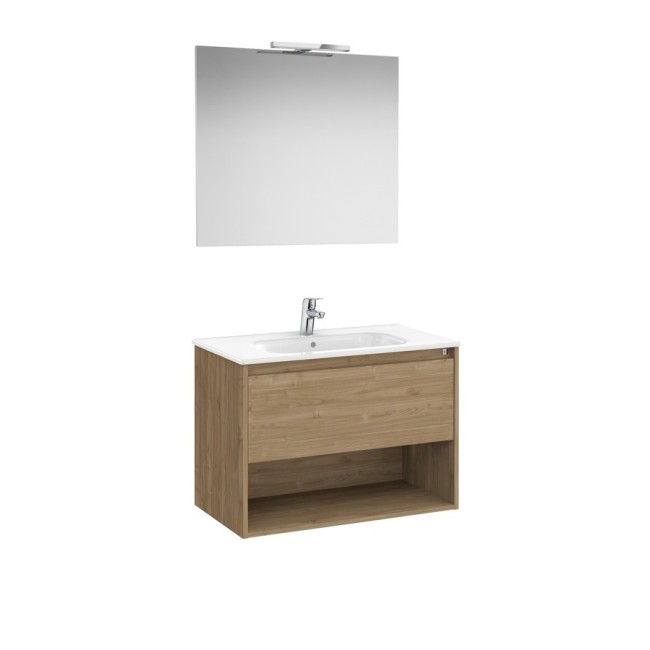 Tenor pack (meuble 1 tiroir et 1 niche inférieure + 1 lavabo + 1 applique starlight) 800 mm noyer