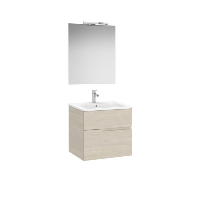 Victoria-n pack (meuble+lavabo+miroir+applique) 2 tiroirs droite 600 mm frêne clair