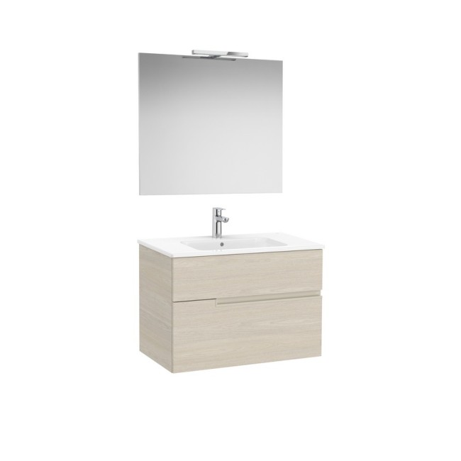 Victoria-n pack (meuble+lavabo+miroir+applique) 2 tiroirs 800 mm frêne clair - ROCA A852107541