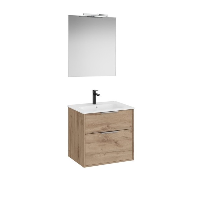 Optica pack 2 tiroirs (meuble, lavabo porcelaine, miroir, applique) 600 mm noyer