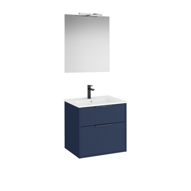 Optica pack 2 tiroirs (meuble, lavabo porcelaine, miroir, applique) 600 mm bleu acier mat