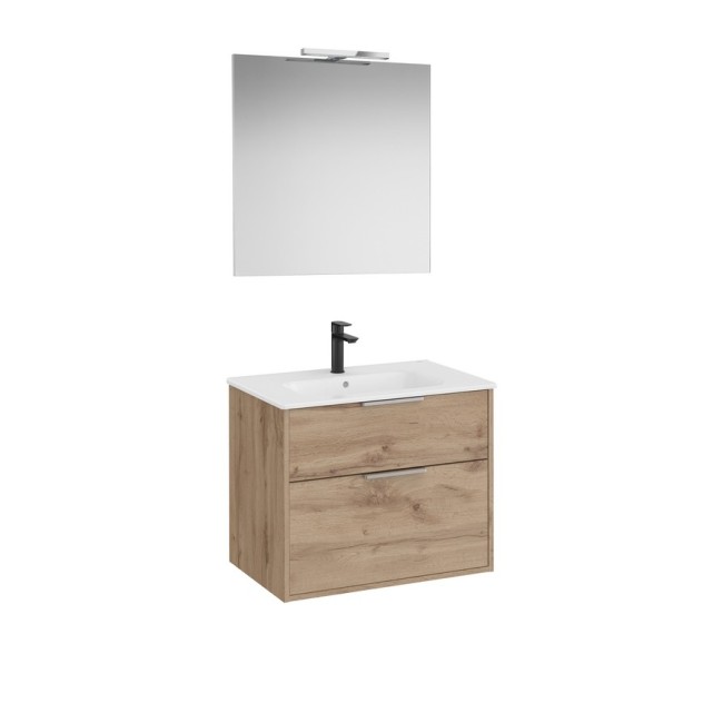 Optica pack 2 tiroirs (meuble, lavabo porcelaine, miroir, applique) 700 mm noyer