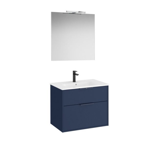 Optica pack 2 tiroirs (meuble, lavabo porcelaine, miroir, applique) 700 mm bleu acier mat