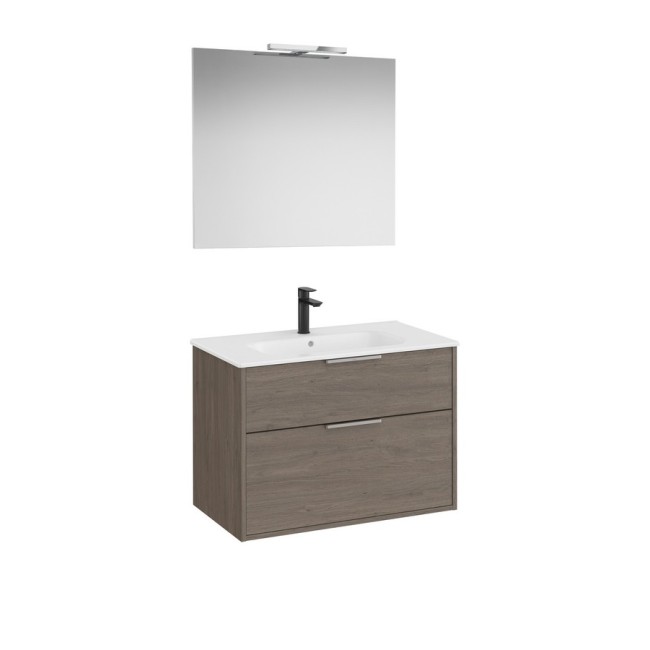 Optica pack 2 tiroirs (meuble, lavabo porcelaine, miroir, applique) 800 mm chêne foncé