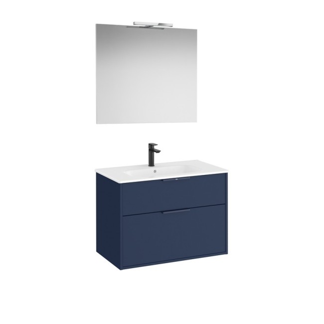 Optica pack 2 tiroirs (meuble, lavabo porcelaine, miroir, applique) 800 mm bleu acier mat