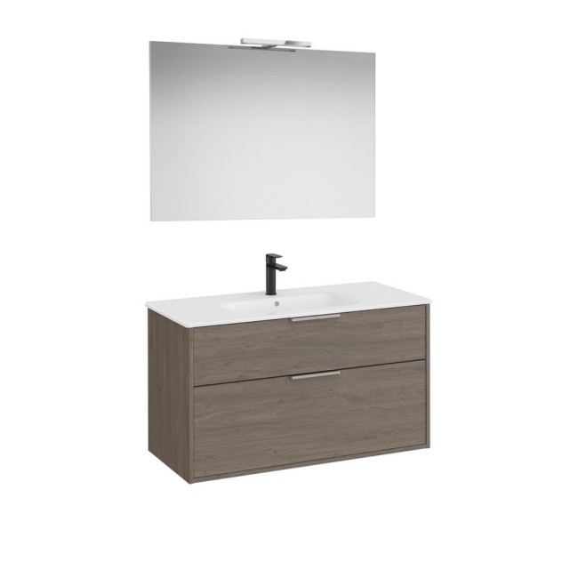 Optica pack 2 tiroirs (meuble, lavabo porcelaine, miroir, applique) 1000 mm chêne foncé