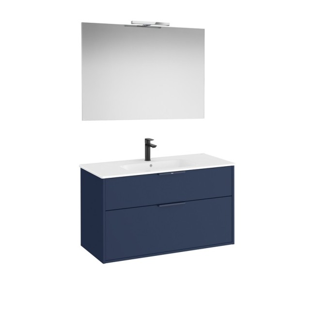 Optica pack 2 tiroirs (meuble, lavabo porcelaine, miroir, applique) 1000 mm bleu acier mat