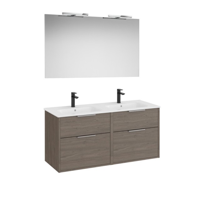 Optica pack 4 tiroirs (meuble, lavabo porcelaine, miroir, appliques) 1200 mm chêne foncé