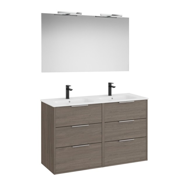 Optica pack 6 tiroirs (meuble, lavabo porcelaine, miroir, appliques) 1200 mm chêne foncé