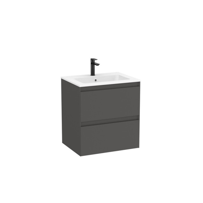 Tenue unik (meuble + lavabo plan procelaine) 2 tiroirs 600mm onyx mat - ROCA A852485531