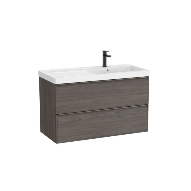 Linea unik (meuble+lavabo asymétrique à droite) 2 tiroirs 1000 cm noyer foncé - ROCA A852492597