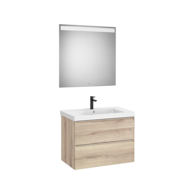 Linea pack (meuble+lavabo+miroir eidos) 2 tiroirs 80 cm bois naturel texturé - ROCA A852495524