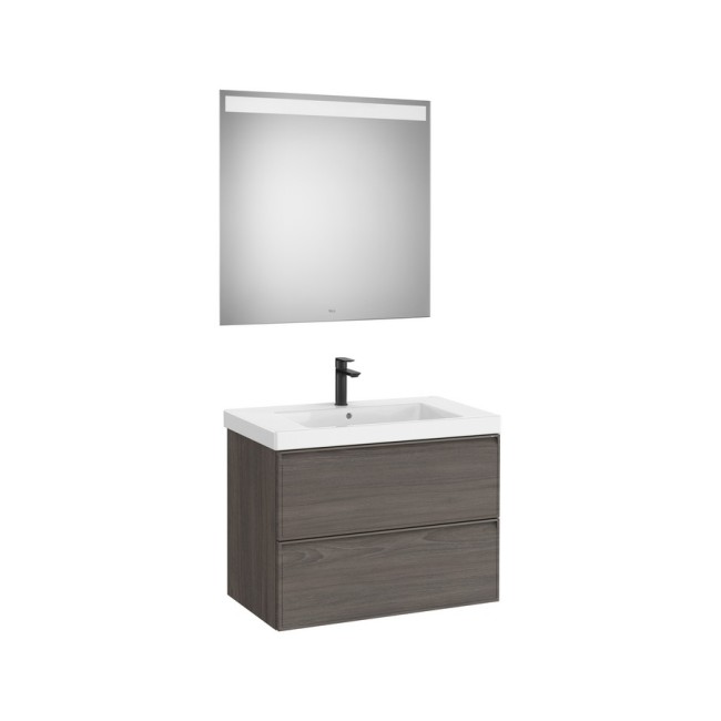 Linea pack (meuble+lavabo+miroir eidos) 2 tiroirs 80 cm noyer foncé - ROCA A852495597