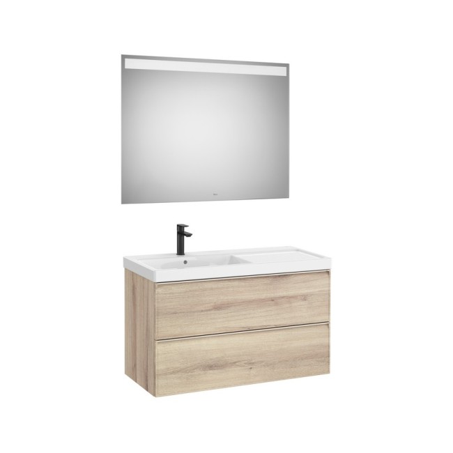 Linea pack (meuble+lavabo asymétrique gauche+miroir eidos) 2 tiroirs 1000 mm - ROCA A852496524