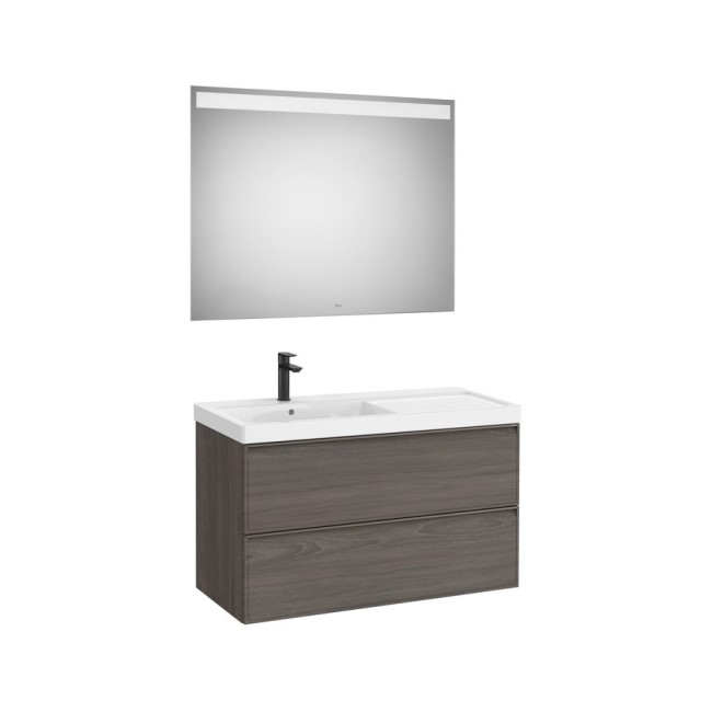 Linea pack (meuble+lavabo asymétrique à gauche+miroir eidos) 2 tiroirs 1000 mm n - ROCA A852496597