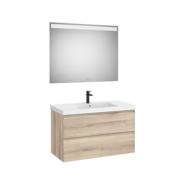 Linea pack (meuble+lavabo centré+miroir eidos) 2 tiroirs 1000 cm bois naturel - ROCA A852497524