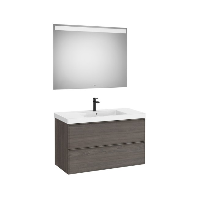 Linea pack (meuble+lavabo centré+miroir eidos) 2 tiroirs 1000 cm noyer foncé - ROCA A852497597