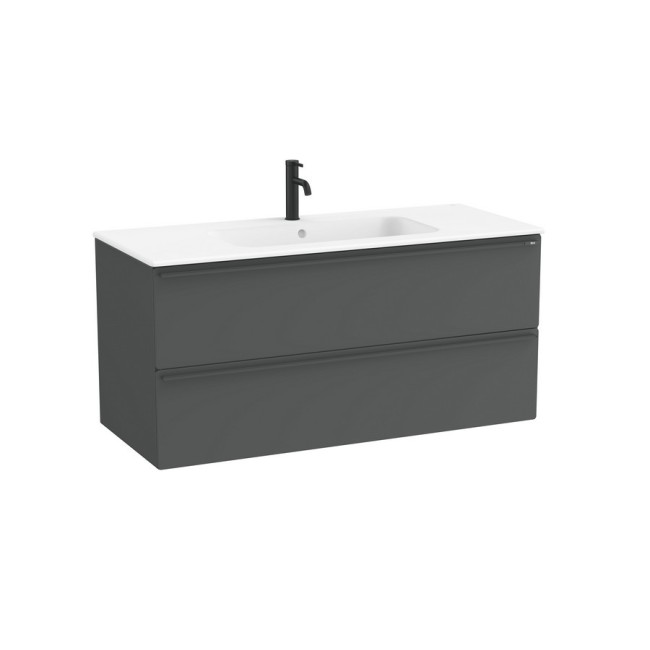 Volia unik meuble 2 tiroirs onyx mat et lavabo en céramique blanc mat 1200 mm - ROCA A852538531