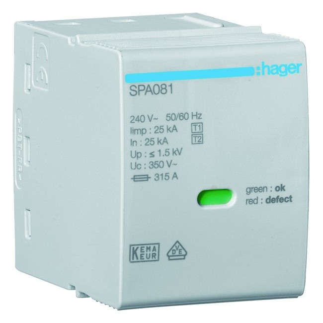 Cartouche L-N/PEN Uc 350V Iimp 25kA Up 1.5kV pour SPA80x - HAGER SPA081