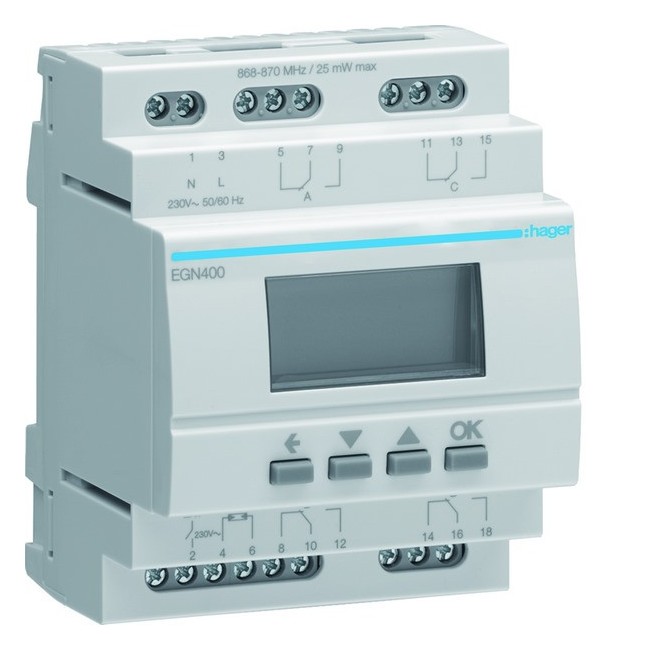 Interrupteur horaire électronique 4 voies annuelle, astronomique, crépusculaire - HAGER EGN400