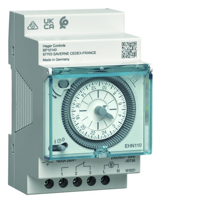 Interrupteur horaire électromécanique 1 voie sur 24 heures sans réserve - HAGER EHN110