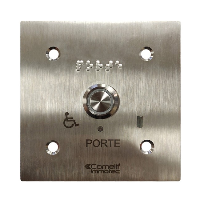 Bouton Sonore + Led Monté Sur Façade Inox 100X100 Gravée Porte Braille - COMELIT BP/408L